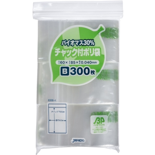 ■バイオマス配合チャック袋 B30B-4(15,000枚)横60×縦85×厚み0.04mm