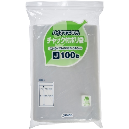 ■バイオマス配合チャック袋 B30J-4(1,500枚)横240×縦340×厚み0.04mm