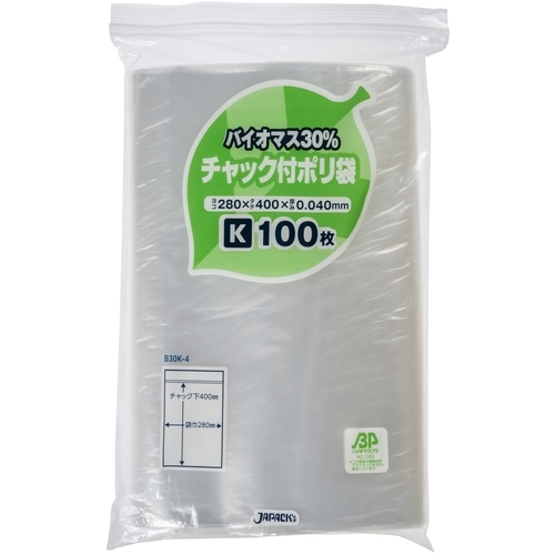 ■バイオマス配合チャック袋 B30K-4(1,500枚)横280×縦400×厚み0.04mm