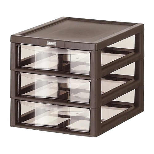 ★61-356-8-2 アプロスB4 机上収納ケース 深型 3段ダークブラウン