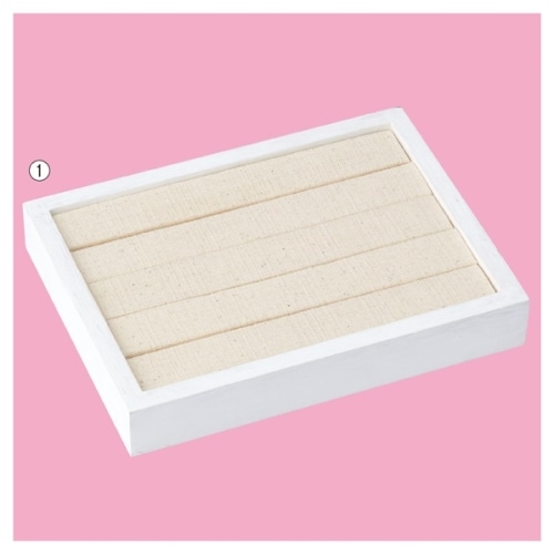★61-545-29-1 ウッドアクセサリートレイ リングディスプレイ台小 ホワイト