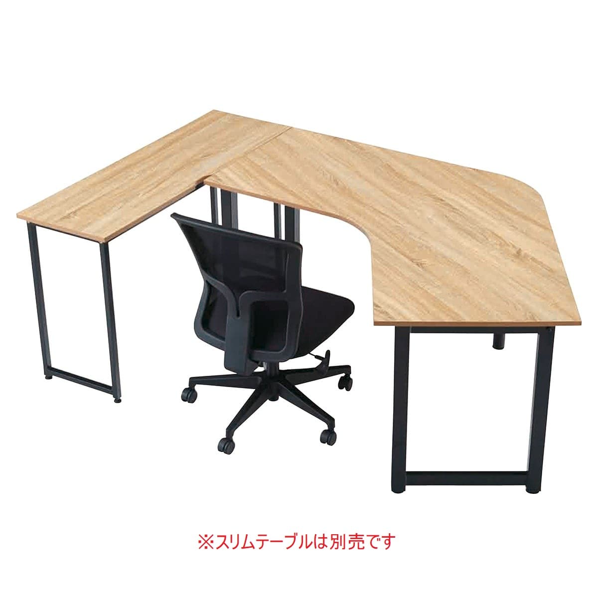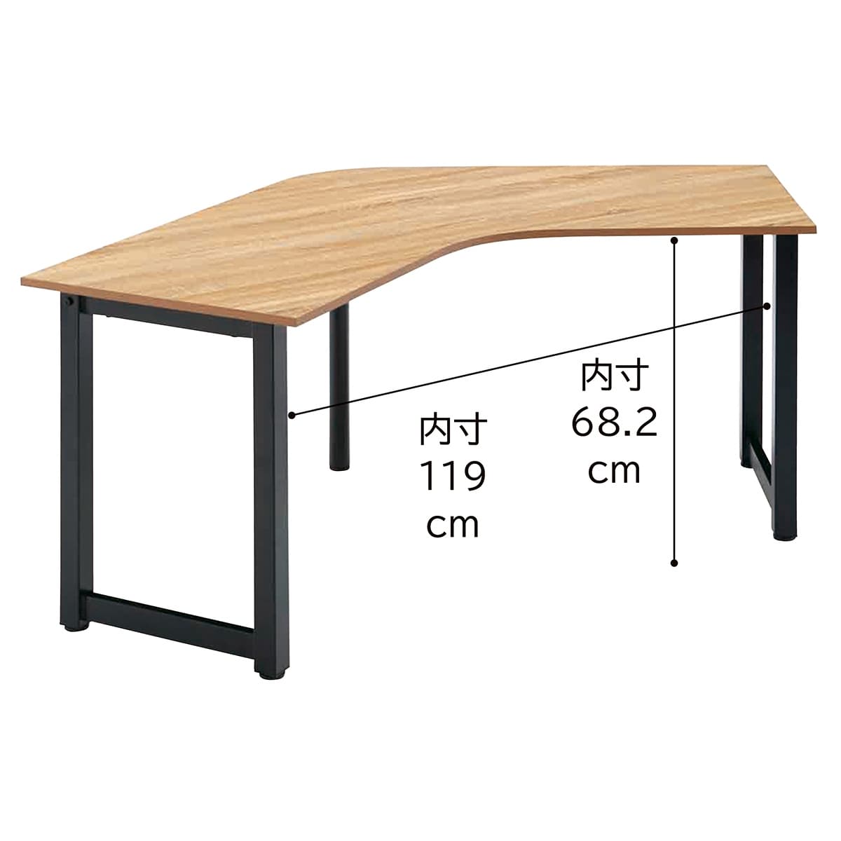 ★61-749-67-1 ブーメラン型テーブル ブラック脚×古木調
