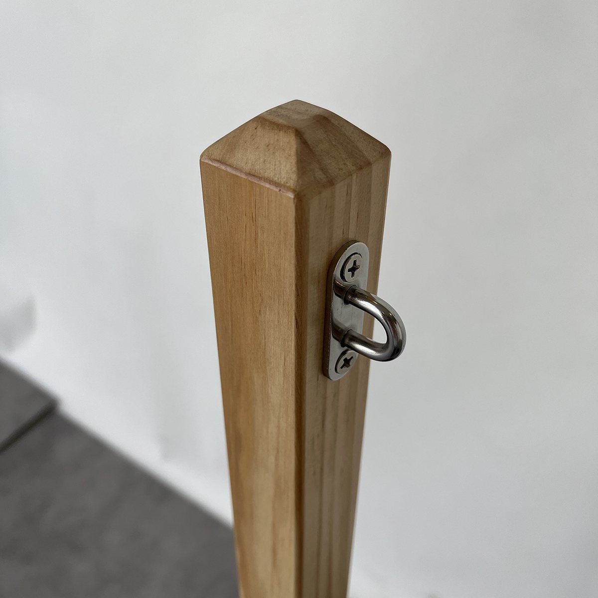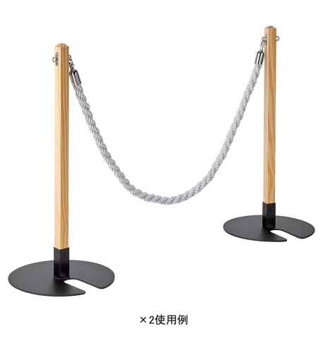 ナチュラルな木製支柱のスタッキングタイプのロープパーテーション/ガイドポール。