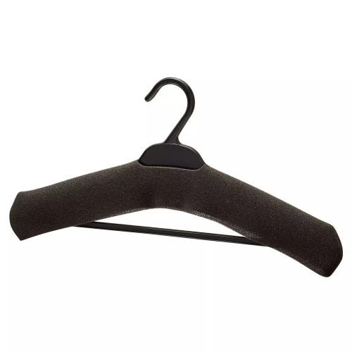 カバー付きなのに安価なプラスチックハンガー。シワや型崩れを防止したりすべり止めの役割も果たします。