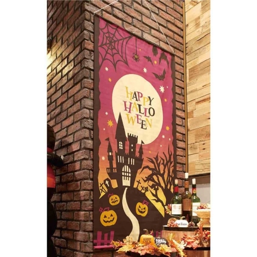 ショーウィンドウや壁面にタペストリー1枚飾るだけでお店の雰囲気をハロウィン仕様に変えることができる手軽なディスプレイアイテムです。