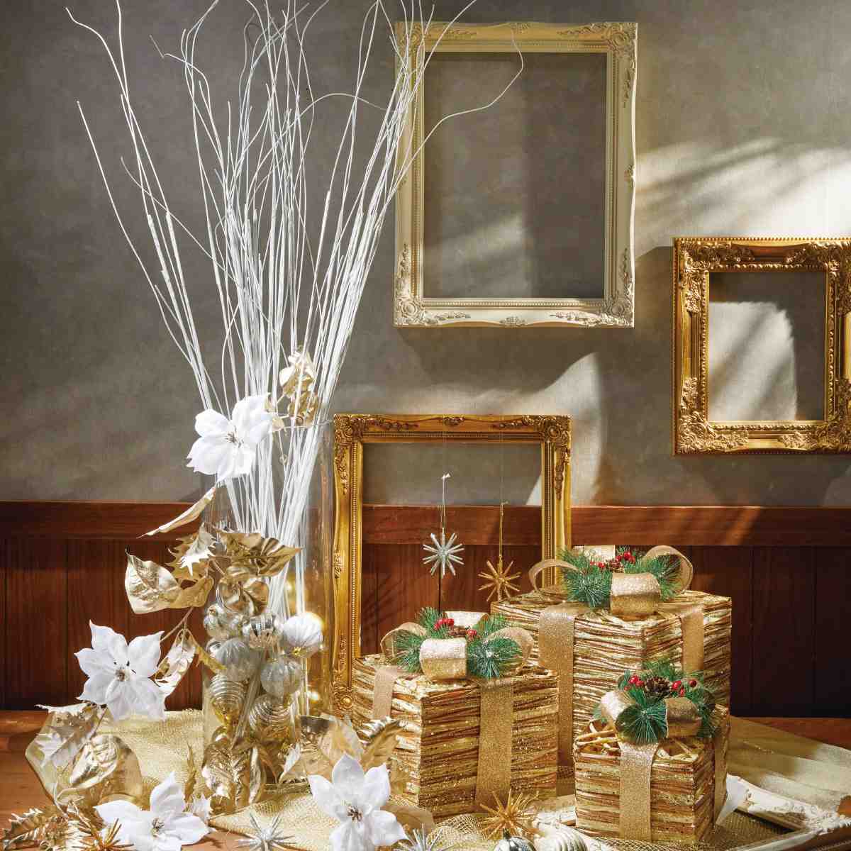★58-57-3-1 ポインセチア造花ブリリアントガーランドゴールド