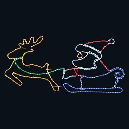 ビッグなモチーフでインパクトたっぷりに飾ろう!サンタとトナカイがソリに乗って飛んでいるシーンを再現したチューブライトです。