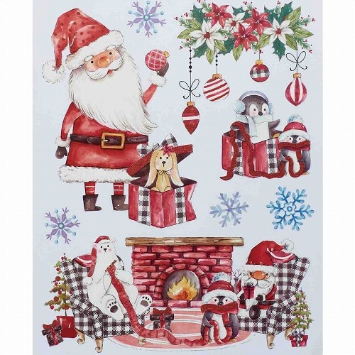 ★58-108-4-1 デコレーションウインドウシールサンタと暖炉