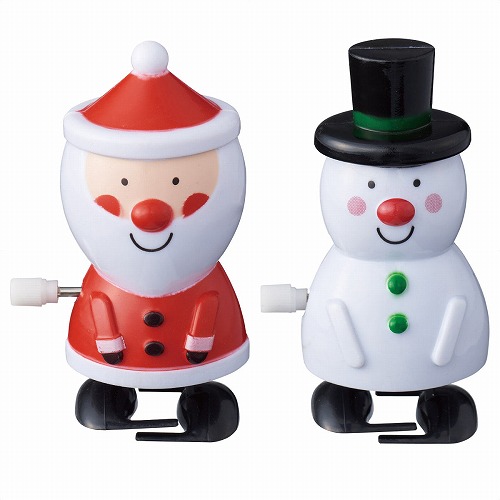 ねじを巻くとトコトコ歩くサンタクロース・雪だるまのおもちゃ。