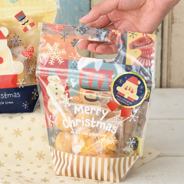クリスマスプレゼントのラッピングに便利な透明袋は、焼菓子や雑貨のセットアップにピッタリ。