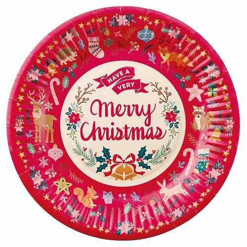 ★58-144-11-3 50個 クリスマス パーティー食器ペーパープレート レッド