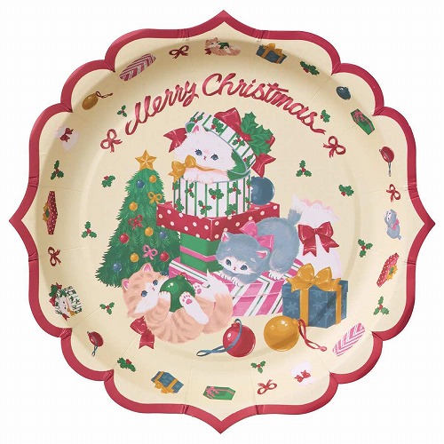 ★58-144-12-2 50枚 クリスアマス ペーパープレート ヴィンテージキャット アイボリー