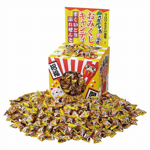おみくじキャンディ×約500個 お持ち帰り用袋×100枚 抽選箱・すくいどり用スプーン×各1個 店頭ポップ×4枚