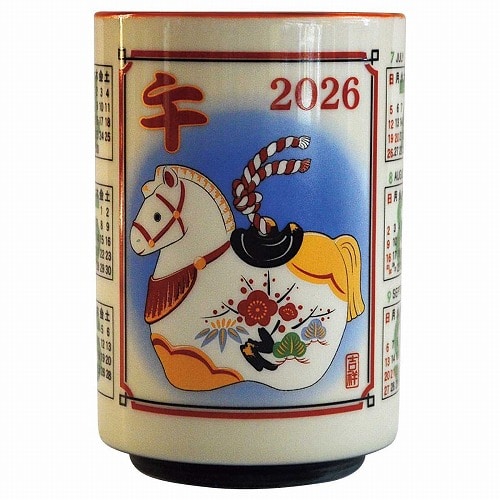 ★58-165-2-2 干支(午)湯呑大(カレンダー付き)