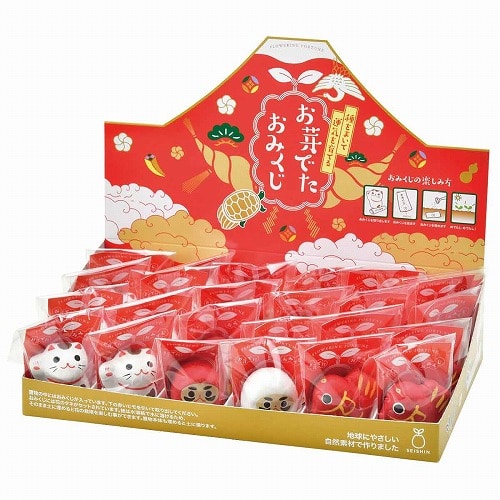 種付きおみくじが入っているかわいい和紙のミニ置物。おみくじには花の種が仕掛けてあるので、そのまま土に埋めると花の栽培が楽しめます。