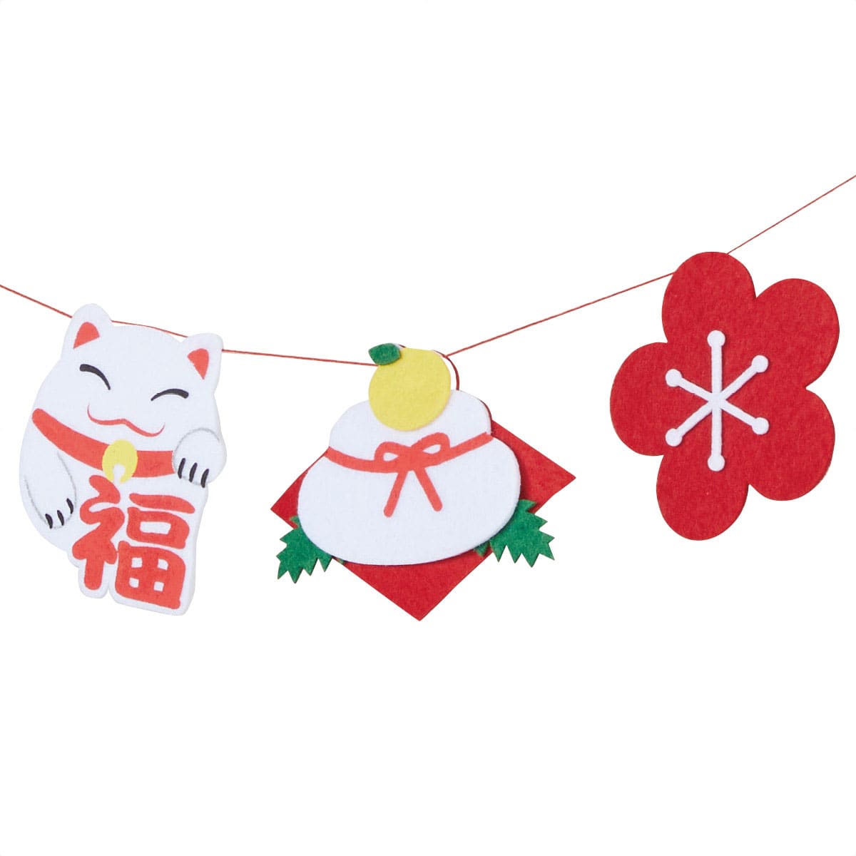 壁面やレジカウンターに吊るしたり、テーブルに置いたり、商品棚やワゴンや看板に巻いたりしてお正月らしいディスプレイに。
