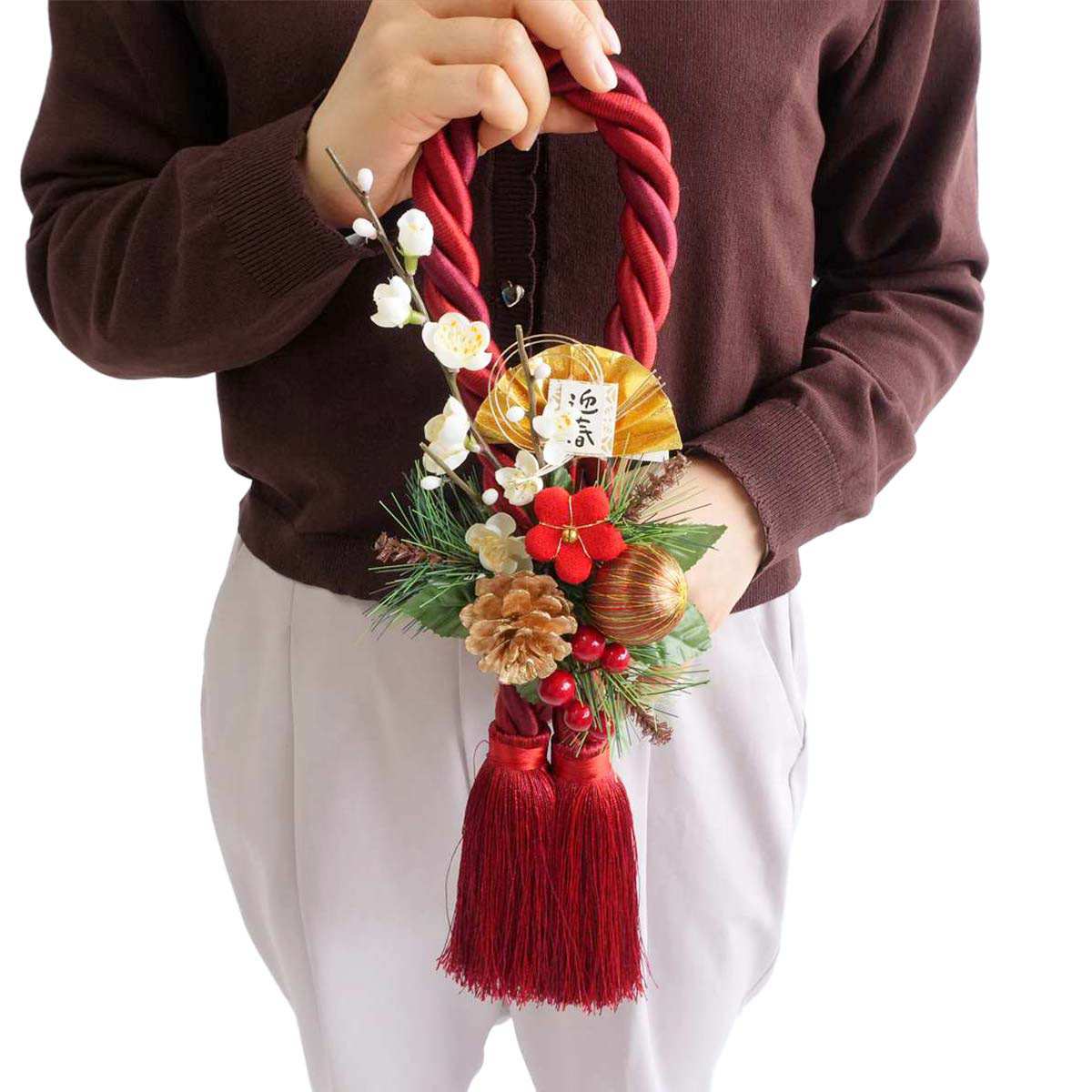 正月飾りの定番しめ縄飾りで、新年の幸運を呼び込みます。