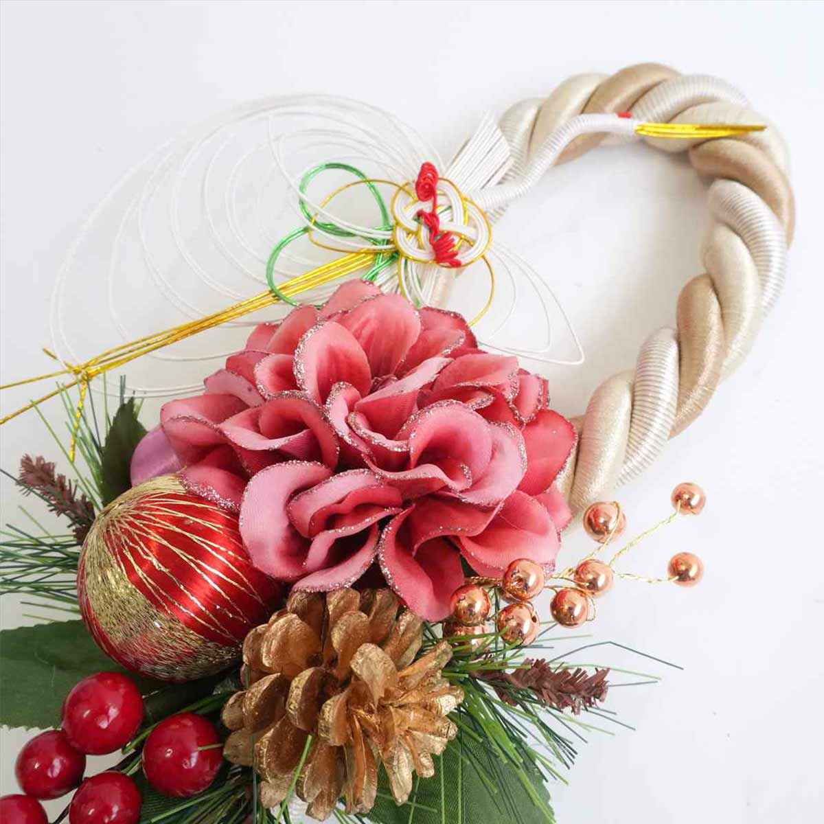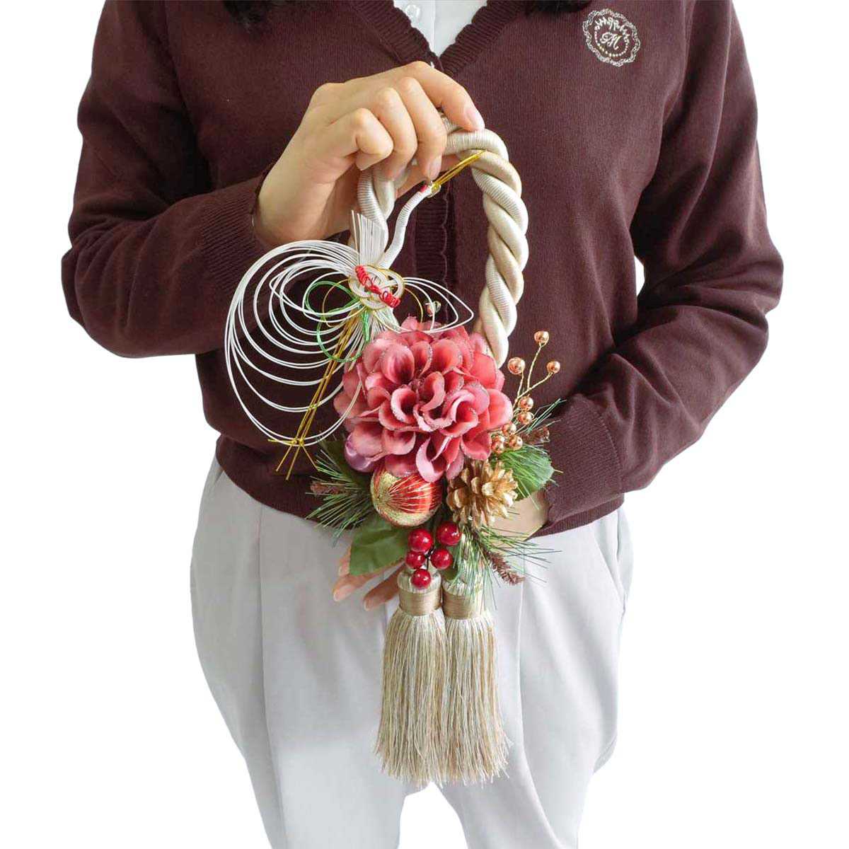 正月飾りの定番しめ縄飾りで、新年の幸運を呼び込みます。