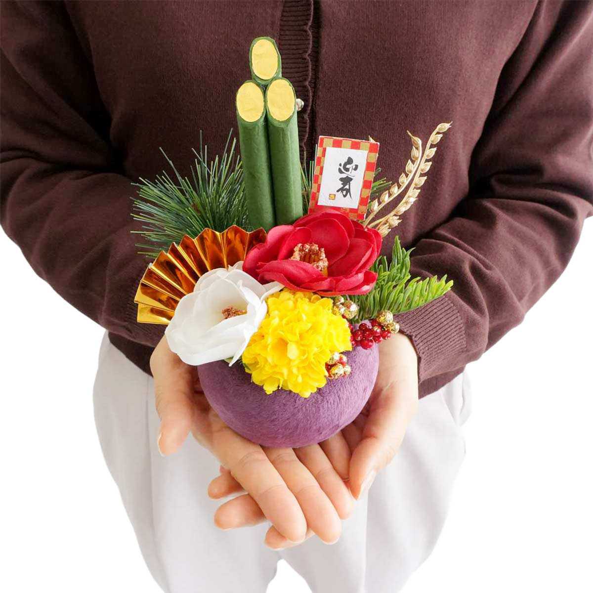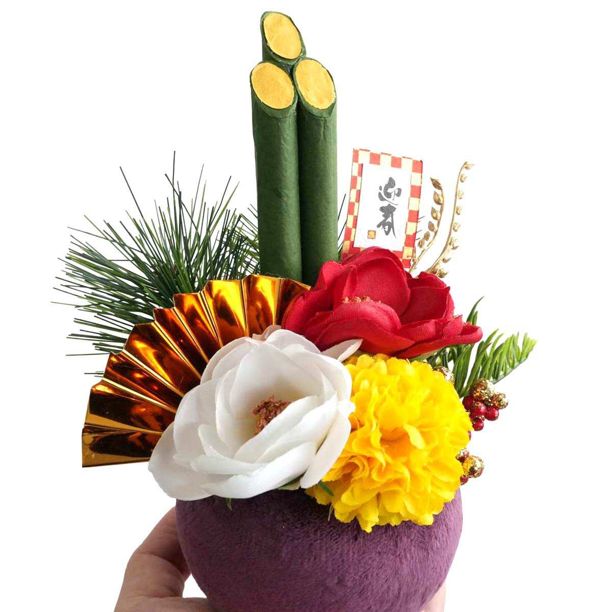 鮮やかな色合いのポットが華やかな門松アレンジメントです。