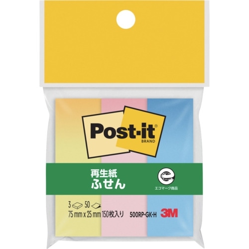 ■ポストイット 再生紙 500RP-GK-H 75 mm x 25 mm アソート