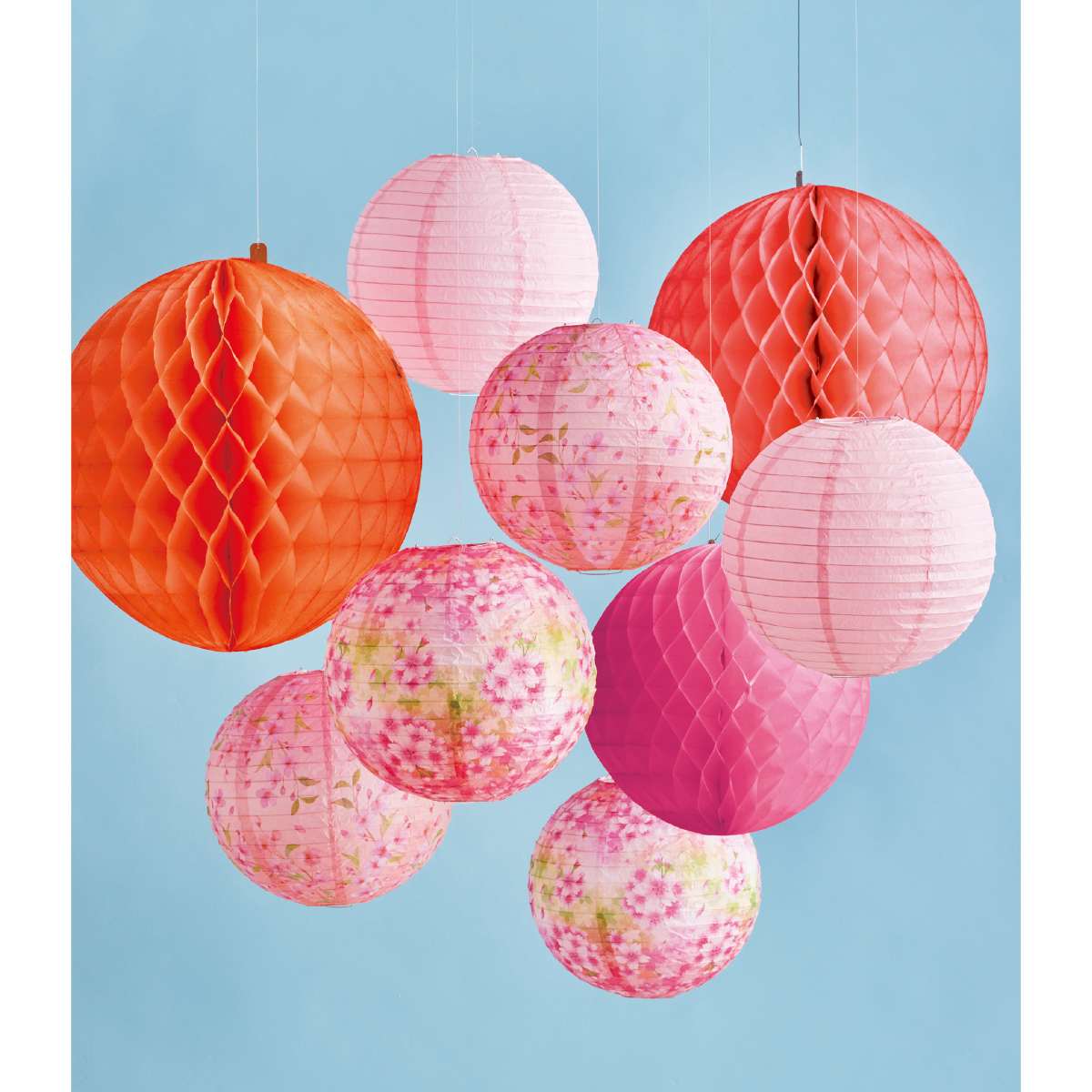 春の訪れを感じさせる、華やかで和風のピンク色の天井飾りで空間を明るく彩ります。