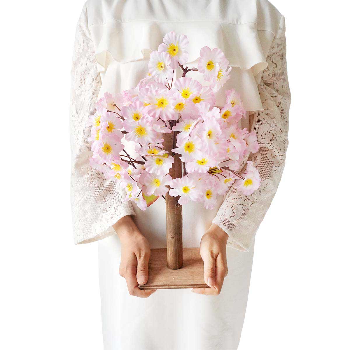 天然木の幹に桜の造花をあしらった卓上サイズの桜ツリー。