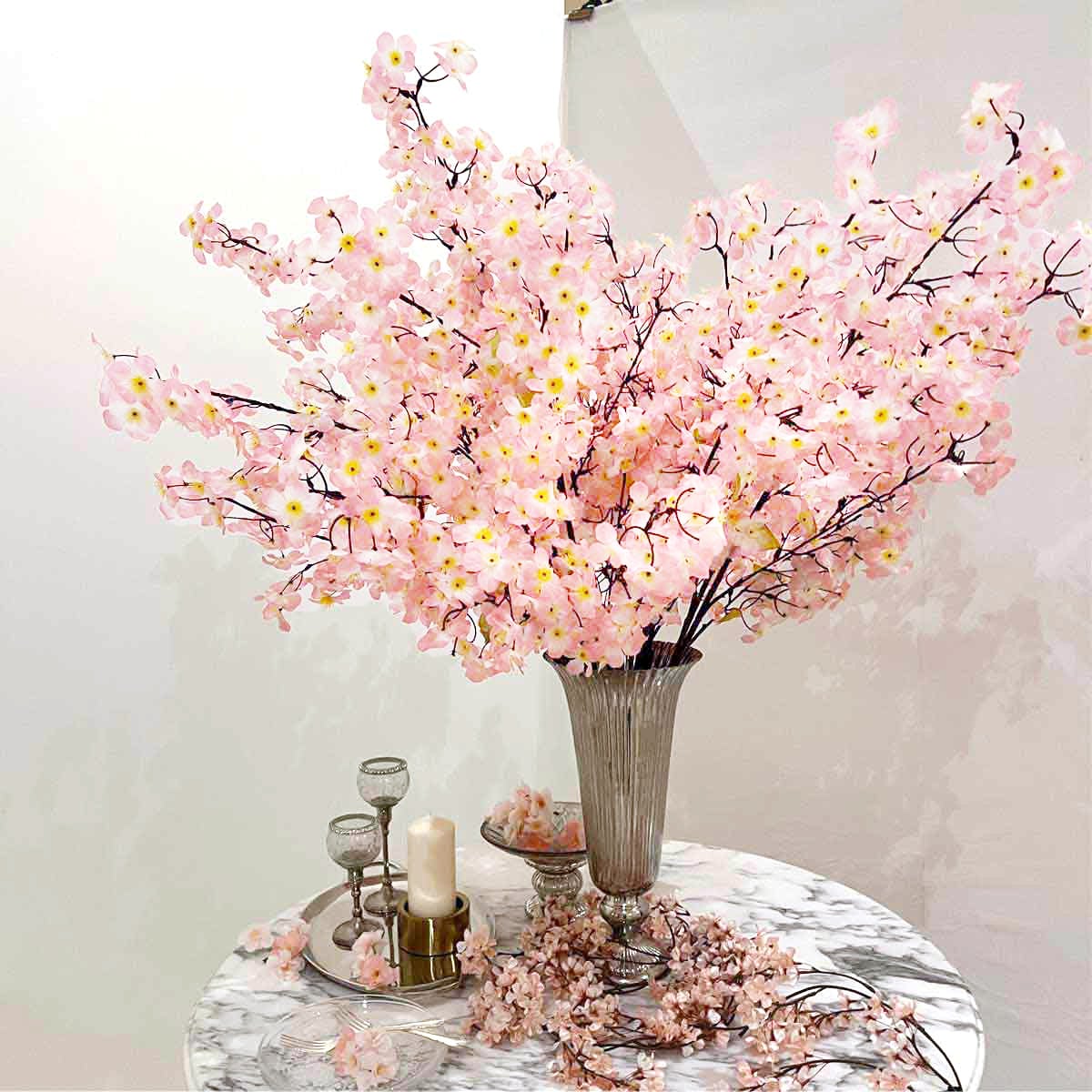 春の訪れを感じさせる華やかで和風の桜の造花装飾をたくさん飾って、空間を明るく彩ります。