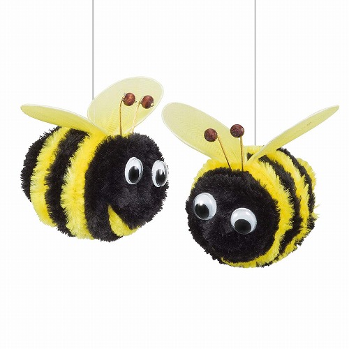 春を告げるかわいいミツバチを天井から吊るして、ディスプレイのアクセントに。