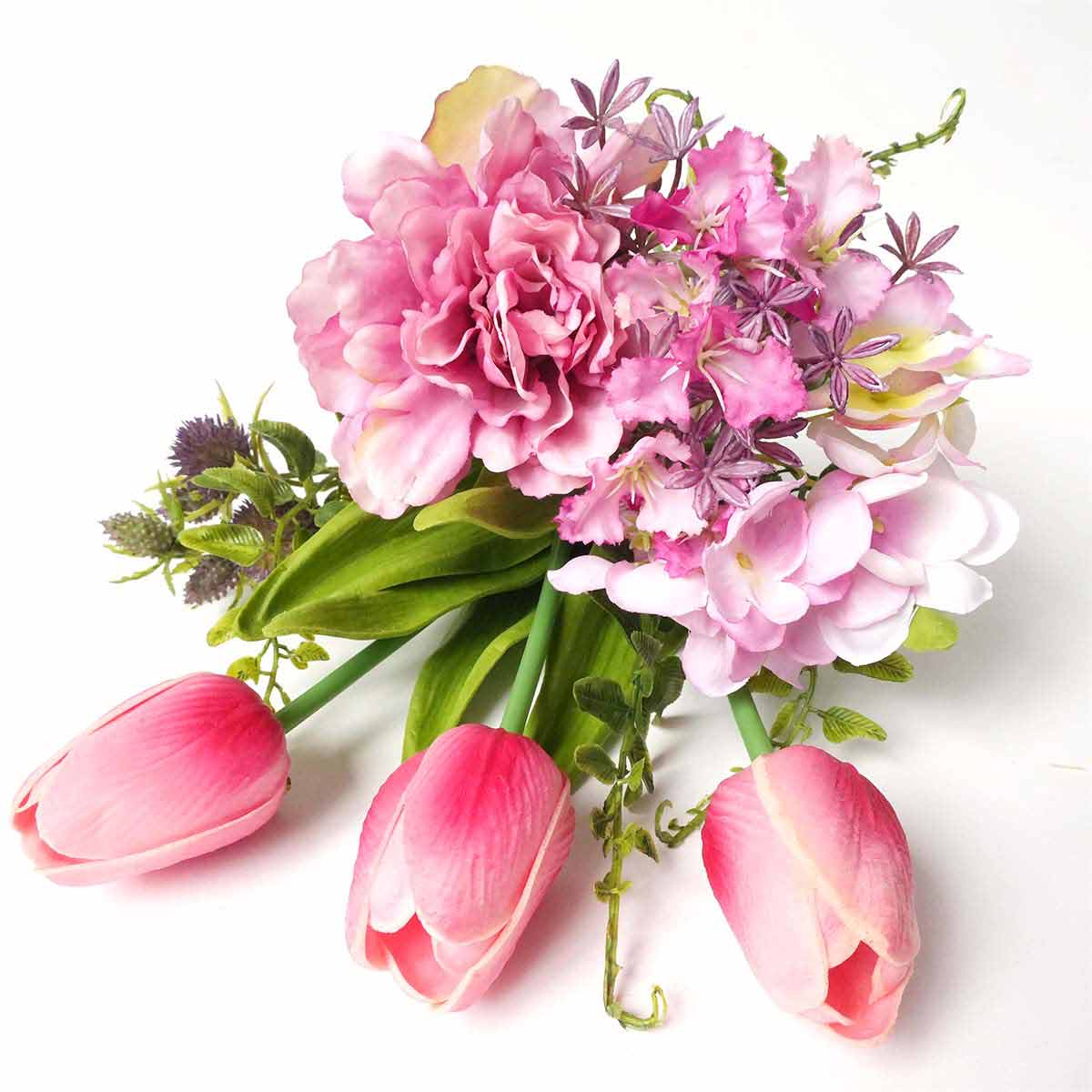 ★53-16-3-2 チューリップ造花ブーケ33cm(ダークピンク)