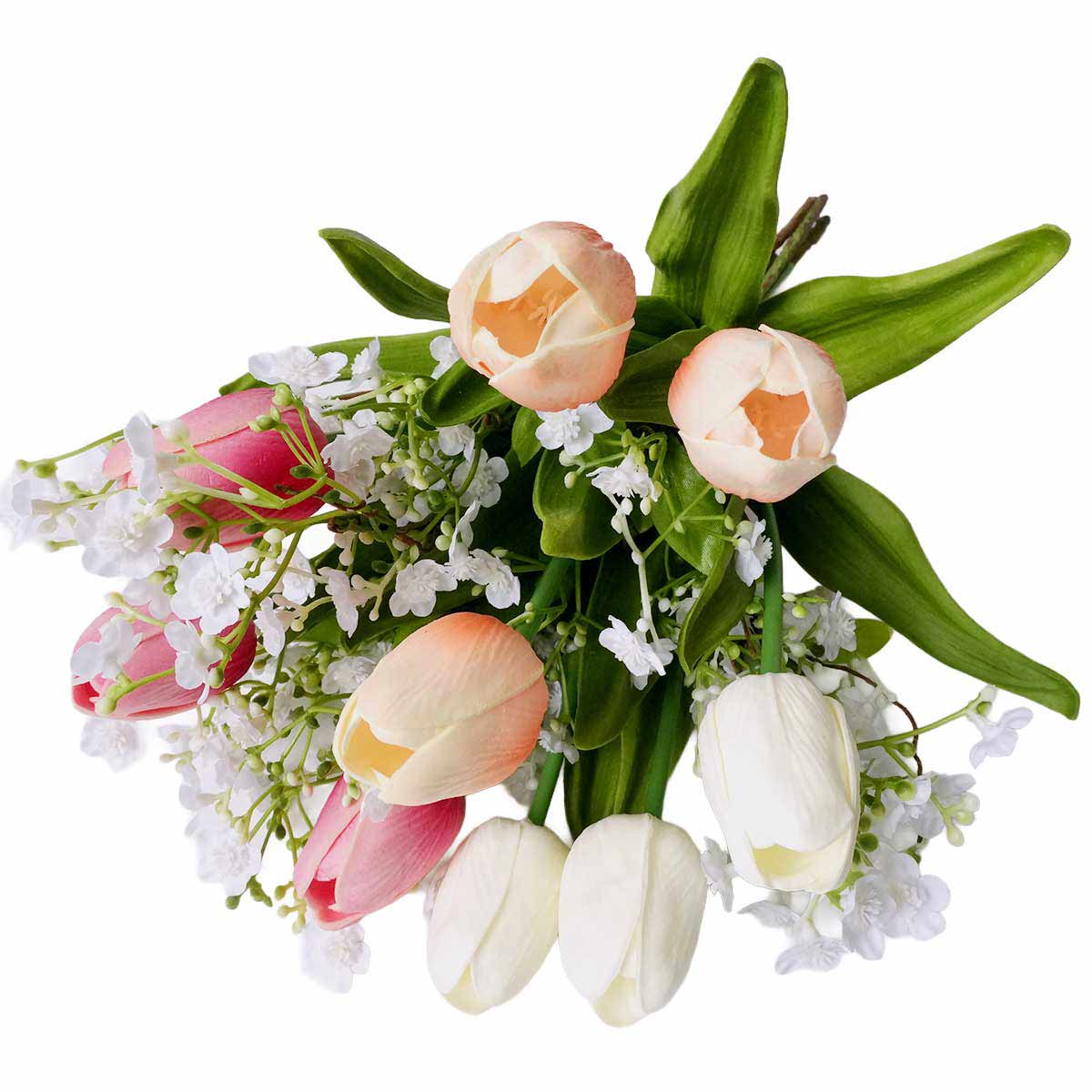 ★53-16-4-1 チューリップかすみ草造花ブーケ42cm
