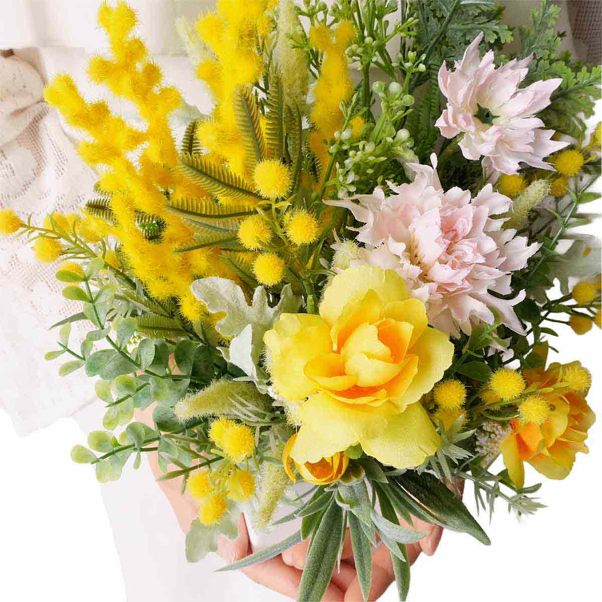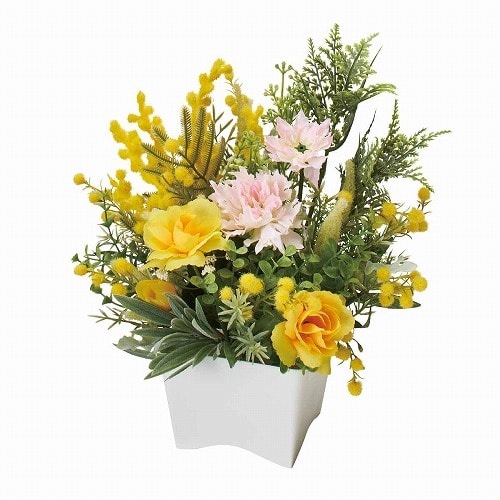 ★53-18-2-1 ミモザ造花アレンジ高さ27cm