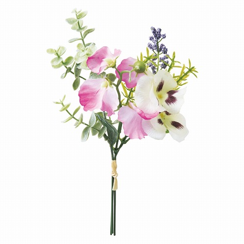 ★53-21-3-2 パンジーミニ造花ブーケ26cm(クリームライラック)