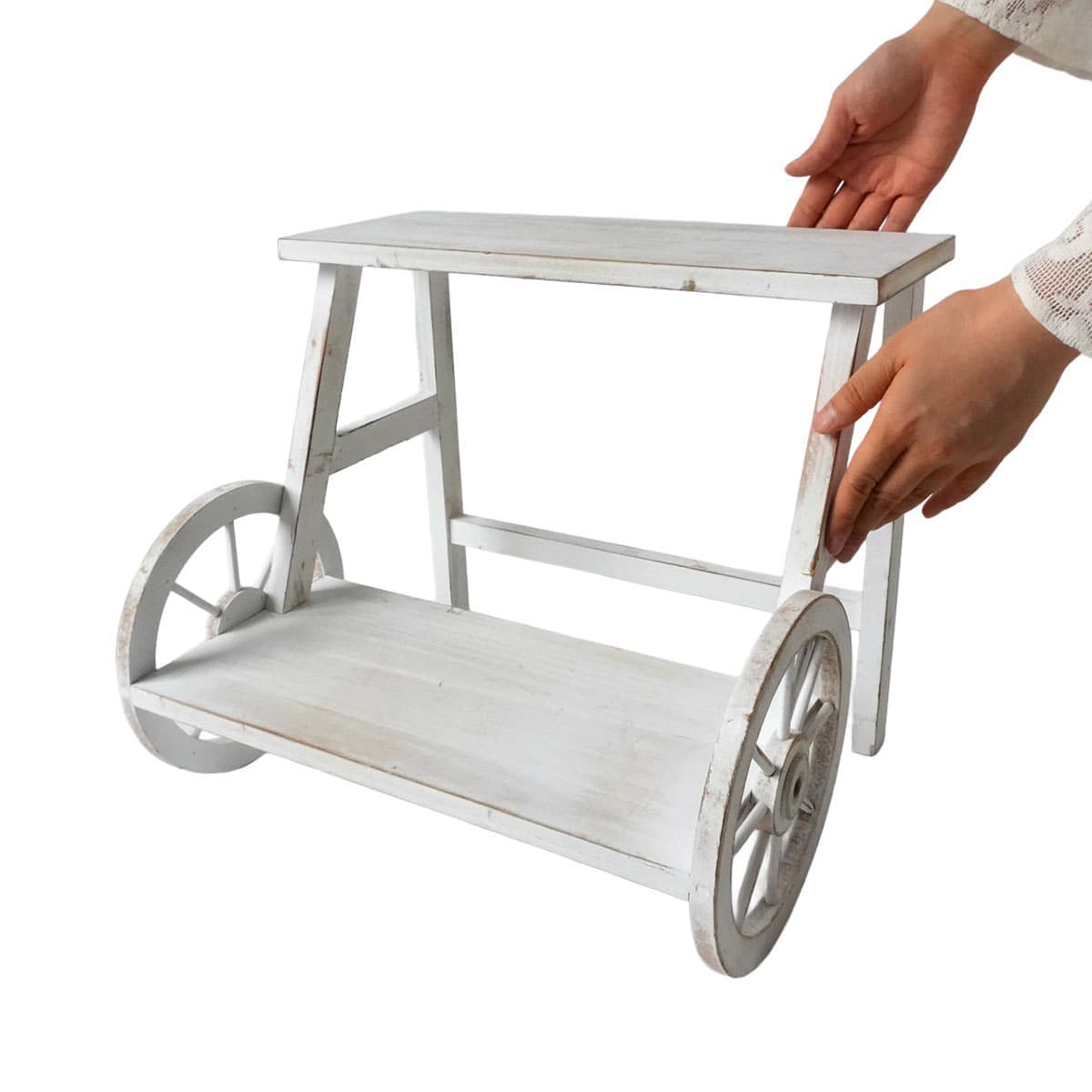 車輪デザインが目を引く木製プランタースタンドです。