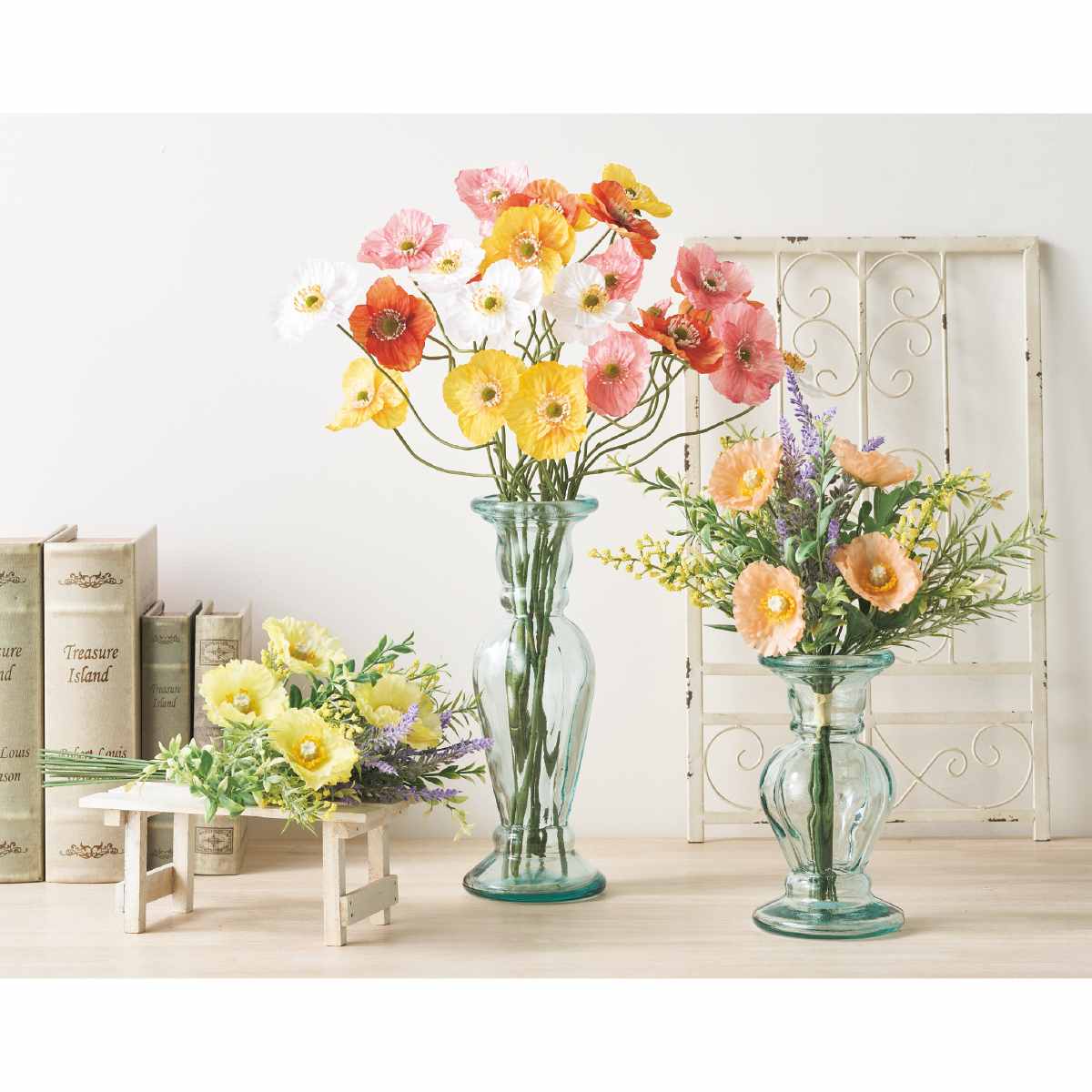 色とりどりのポピーが空間をパッと春色に。
