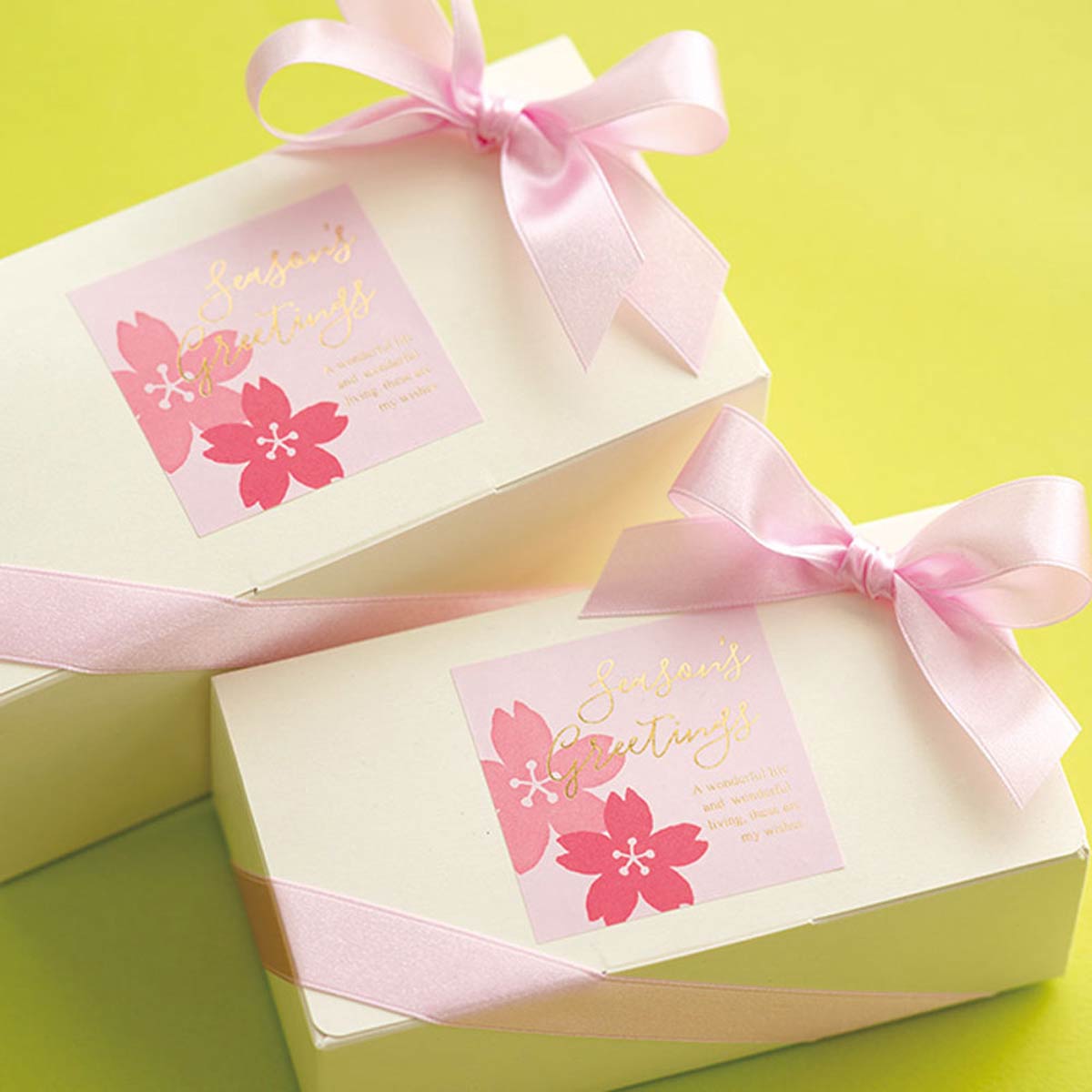 箱や袋などに貼るだけで春ギフトが完成します。