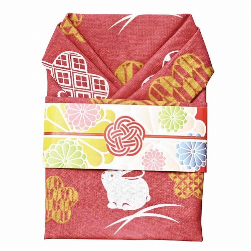 着物風に折りこみされた和柄文様が素敵な手ぬぐい。