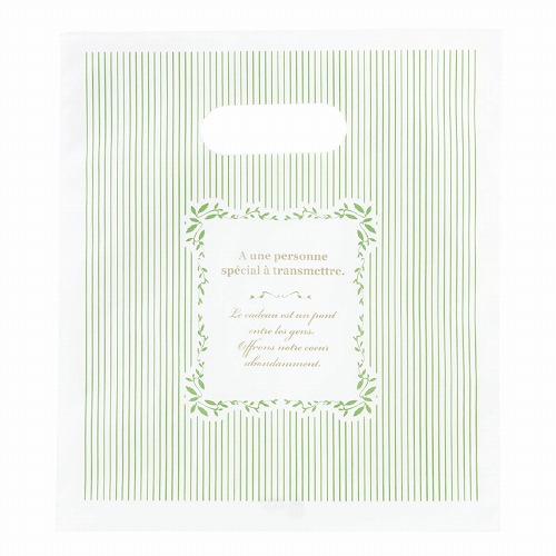 淡いミントグリーンのストライプが爽やかな手提げポリ袋はホワイトデーギフトにおすすめ。