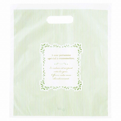 淡いミントグリーンのストライプが爽やかな手提げポリ袋はホワイトデーギフトにおすすめ。