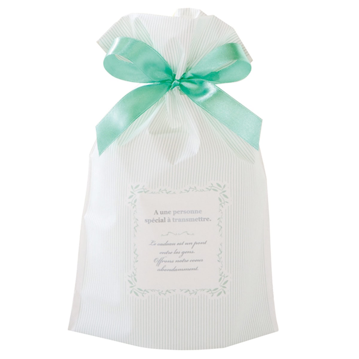 淡いミントグリーンのストライプが爽やかなリボン付きギフトバッグはホワイトデーのプレゼント用におすすめ。