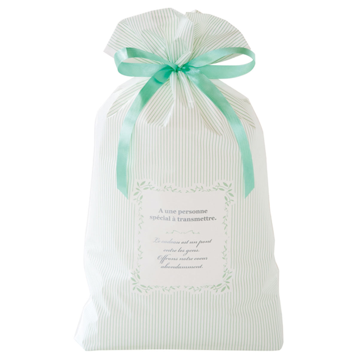 淡いミントグリーンのストライプが爽やかなリボン付きギフトバッグはホワイトデーのプレゼント用におすすめ。