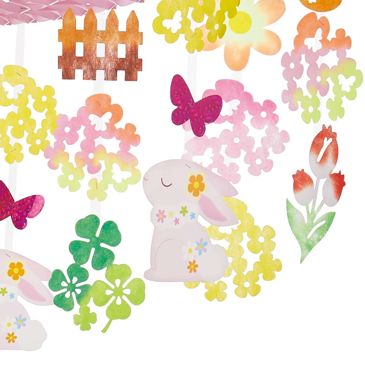 ウサギやお花の飾りの付いた賑やかなガーランド。