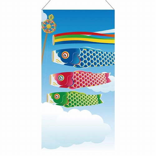 こどもの日売り場にぴったりの、こいのぼりが泳いでいるタペストリー。