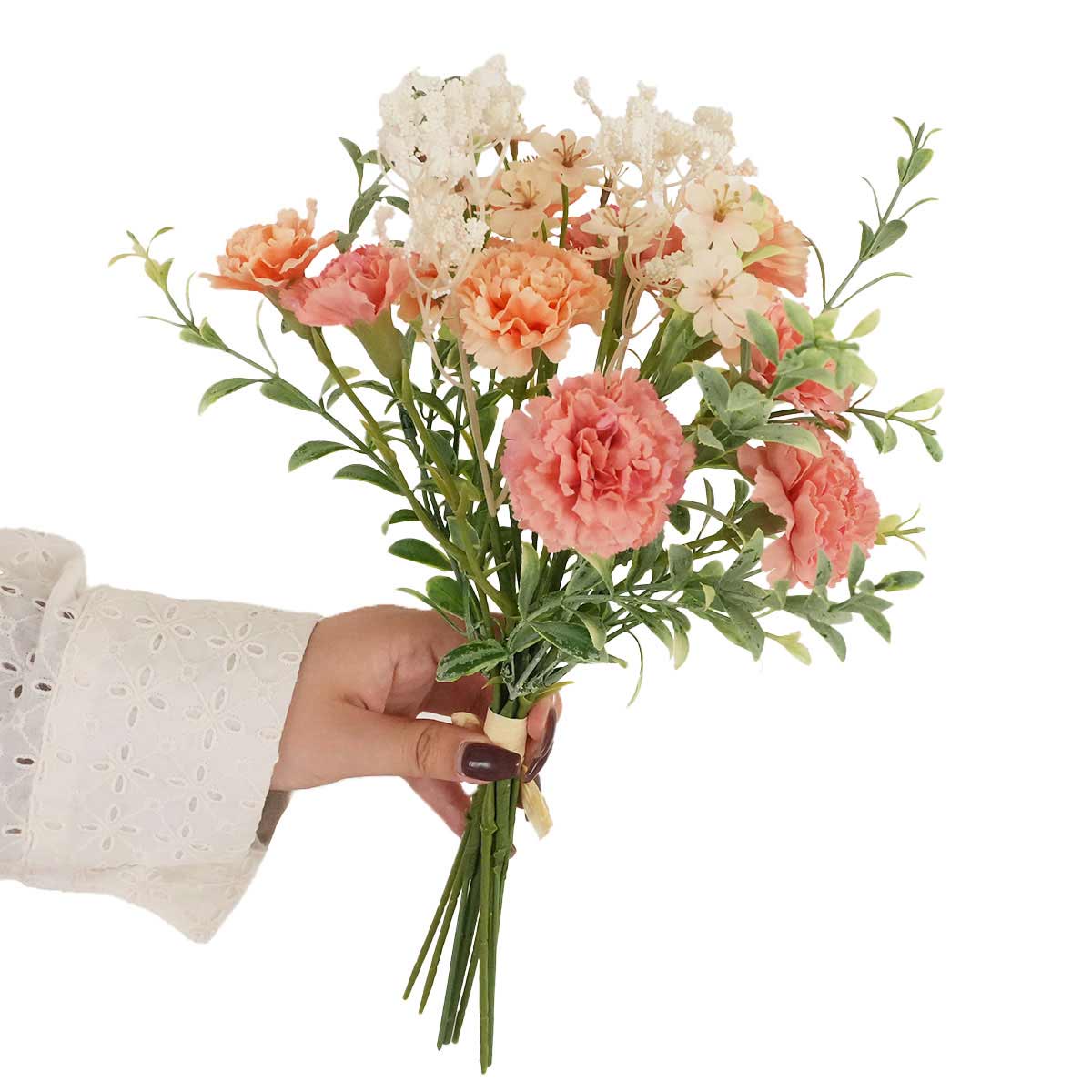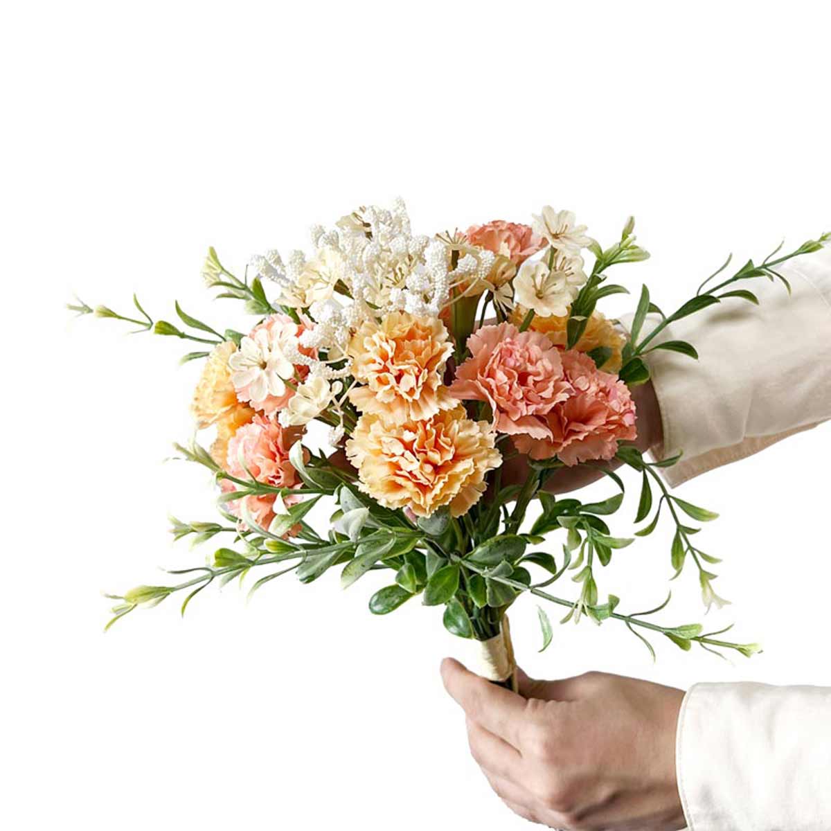 ★53-48-1-1 カーネーションブーケ20cm (造花)ピーチピンク