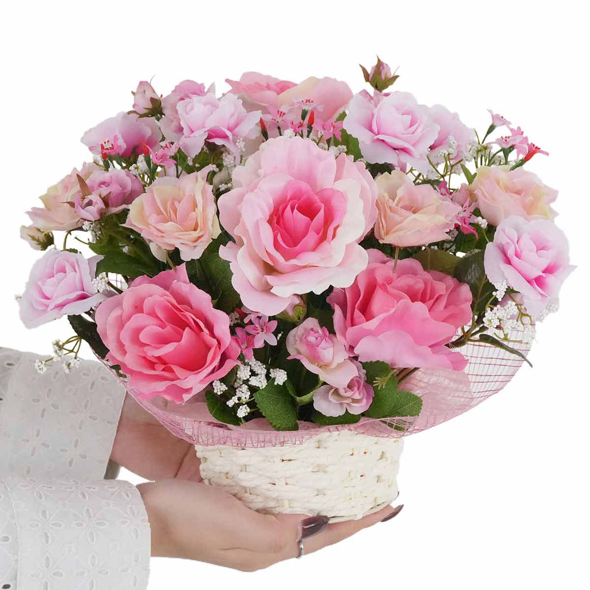 ★53-48-3-2 ローズ造花アレンジ(ピンク)