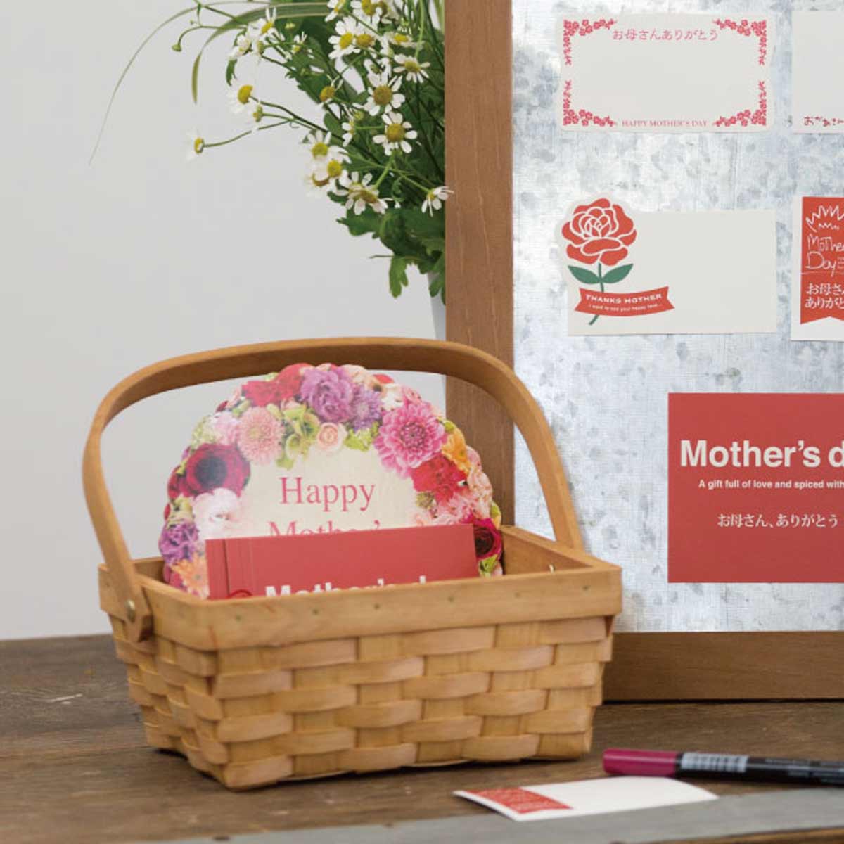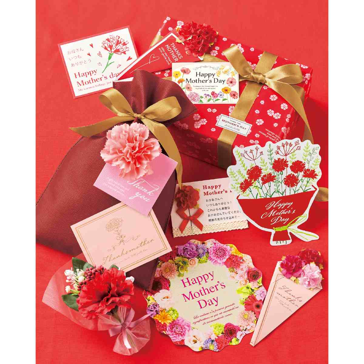 母の日に感謝の気持ちを伝える華やかなカードです。
