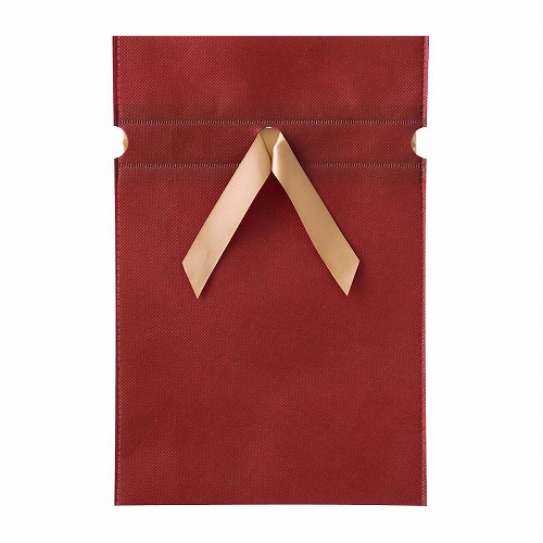 ★53-51-6-1 10枚 不織布リボン付きギフトバッグ シックカラーワイン(16×25[19]cm)