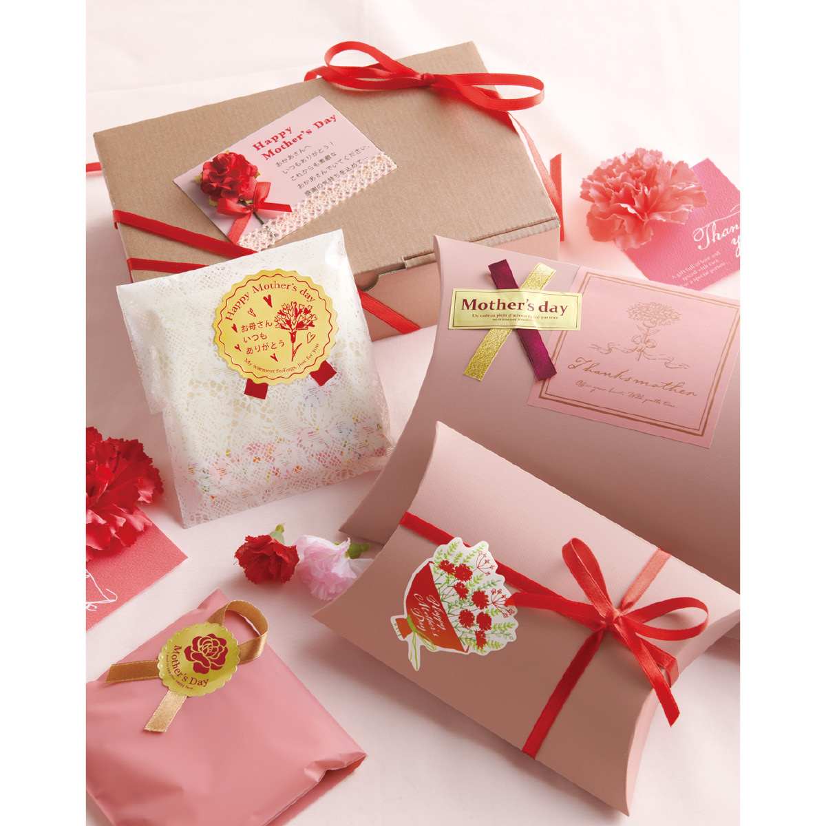 母の日のプレゼントに、特別なシールで気持ちを伝えましょう。