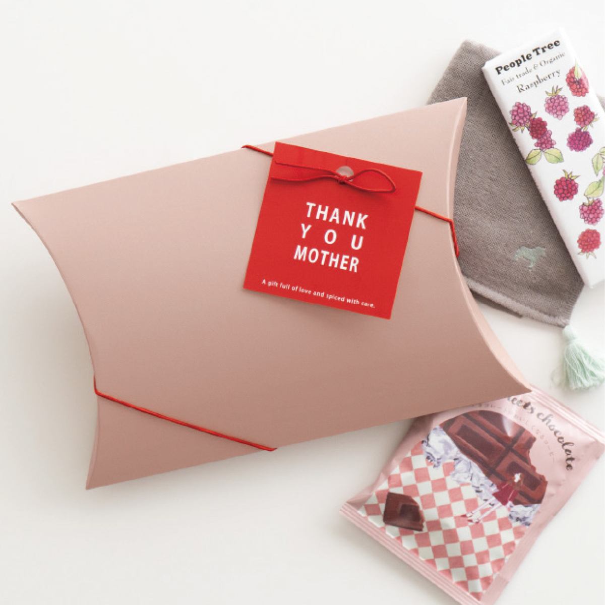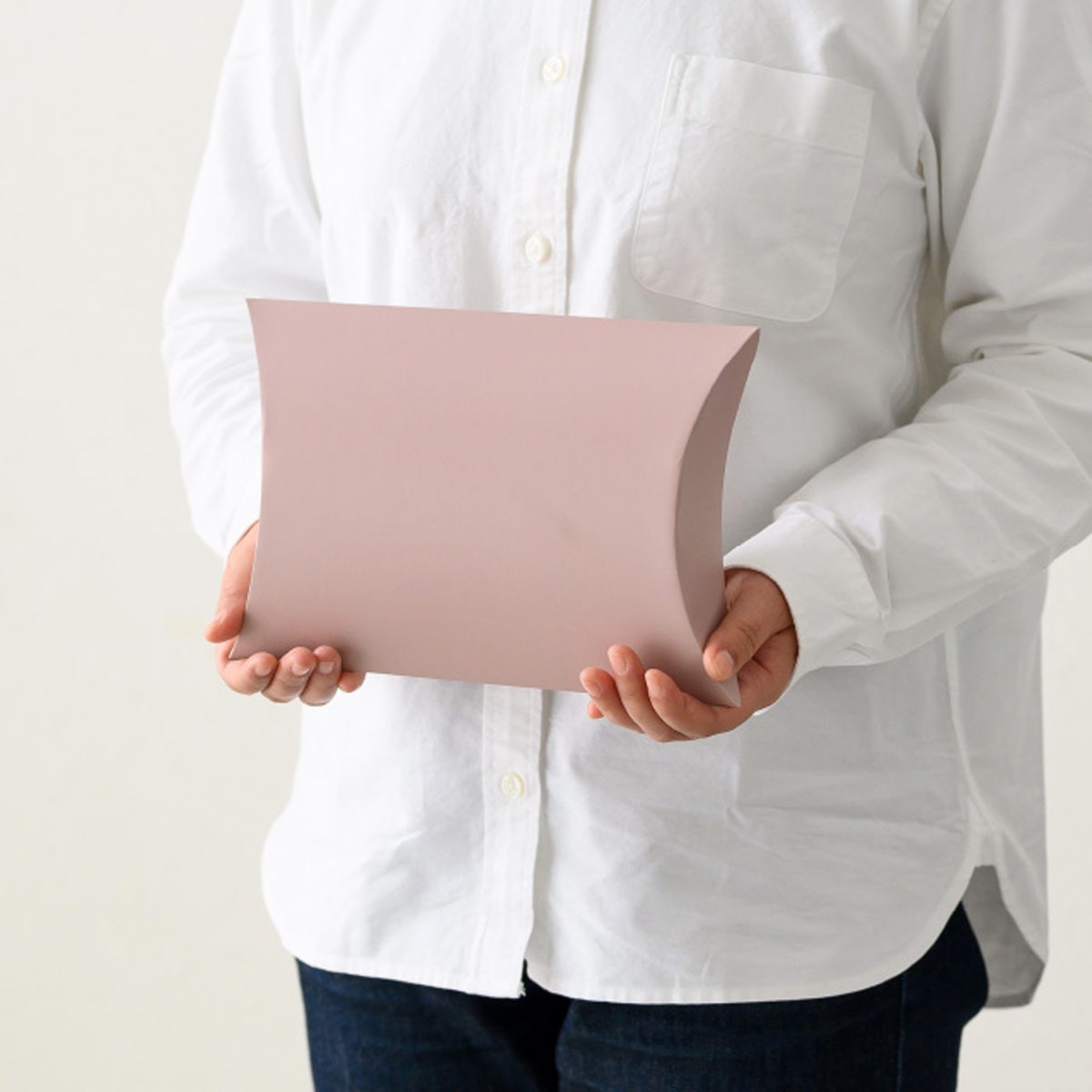 くすみカラーがおしゃれな枕型のギフトボックス。
