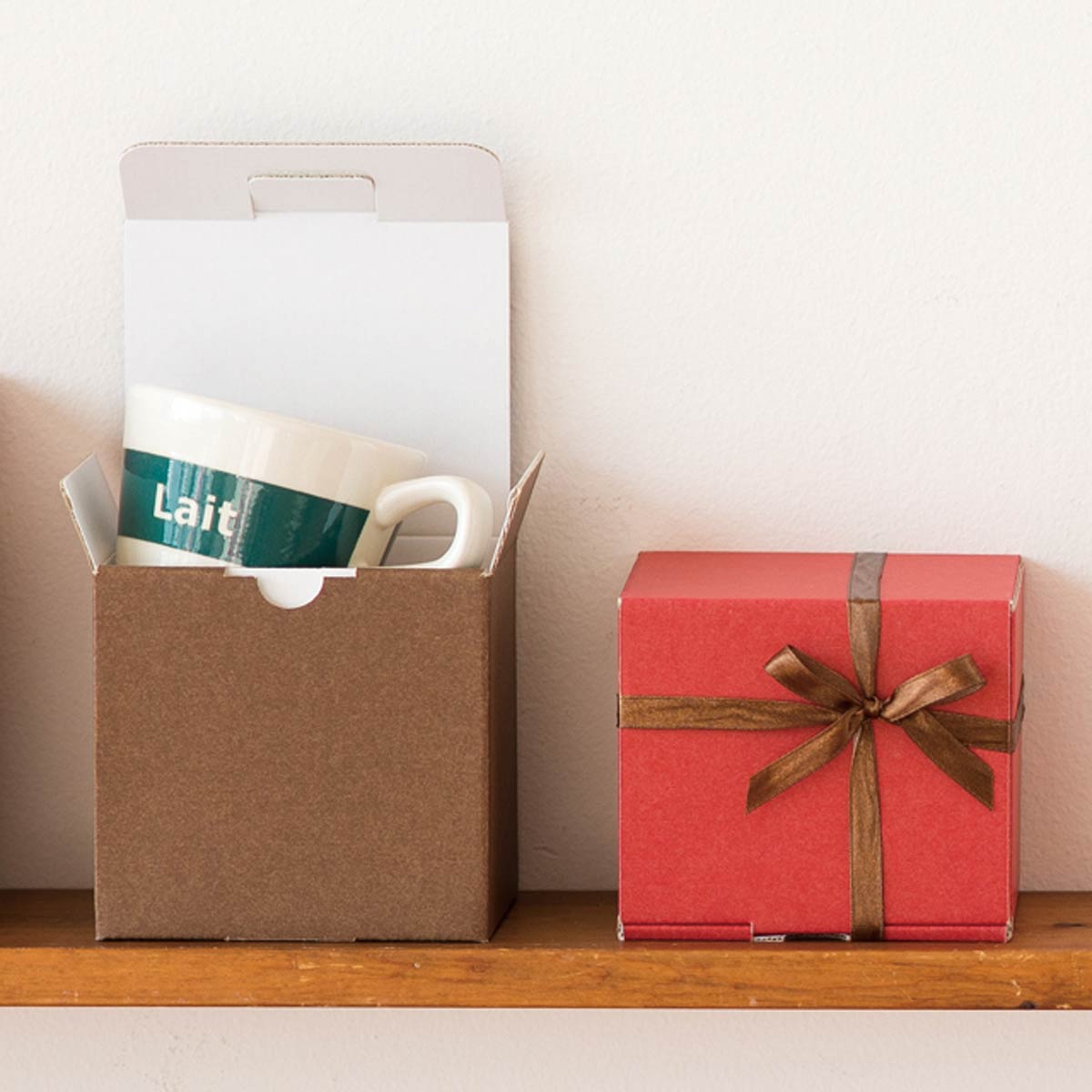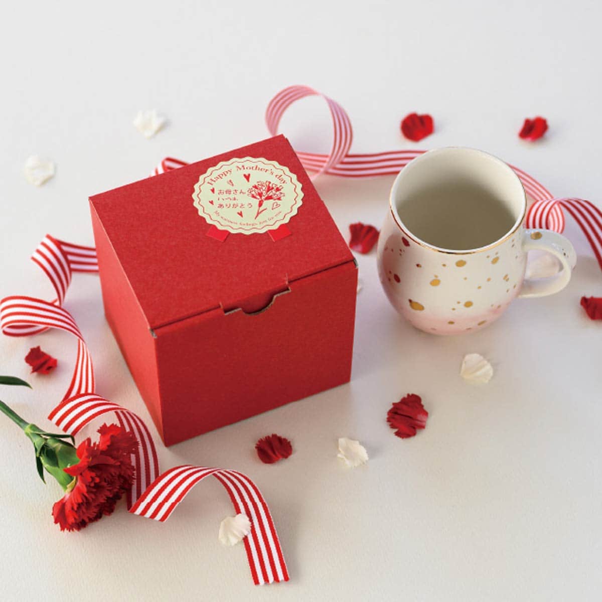 母の日のプレゼントラッピングにおすすめのエンジ色の無地ギフトボックス。