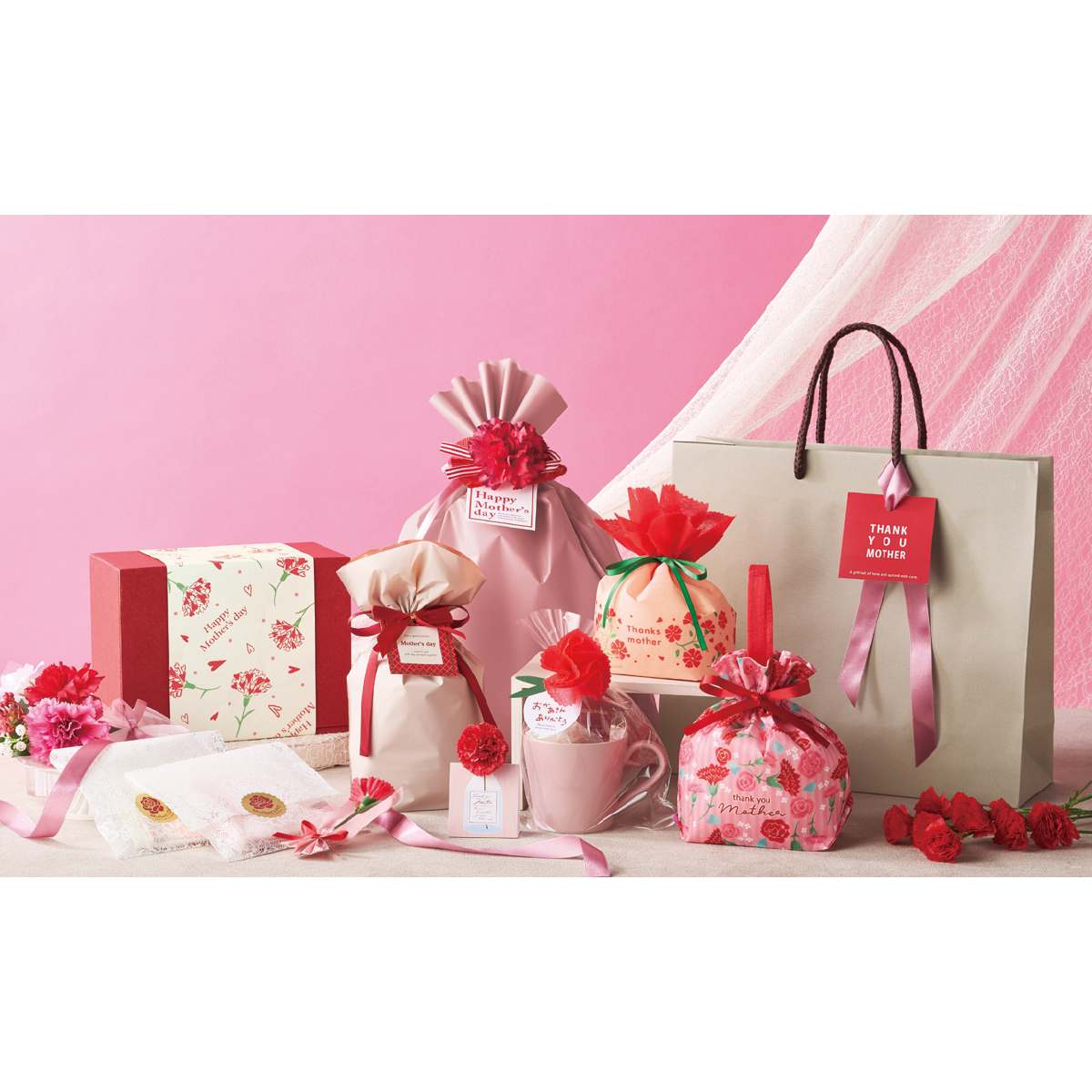 母の日のプレゼントラッピングにおすすめのエンジ色の無地ギフトボックス。